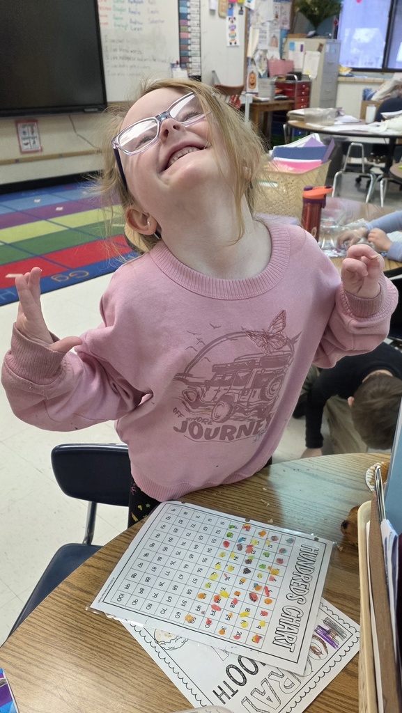 In honor of the 100th day of school attendance (tomorrow, 2/4!), Ms. Simpson's 2nd grade students read a poem about 100 days of school, completed a creative writing task, and used dice to "Race to 100".